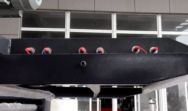 The machine use hydraulic printing-roll loading system which can automatically load printing rolls and run inks after the machine alarm working signal. |